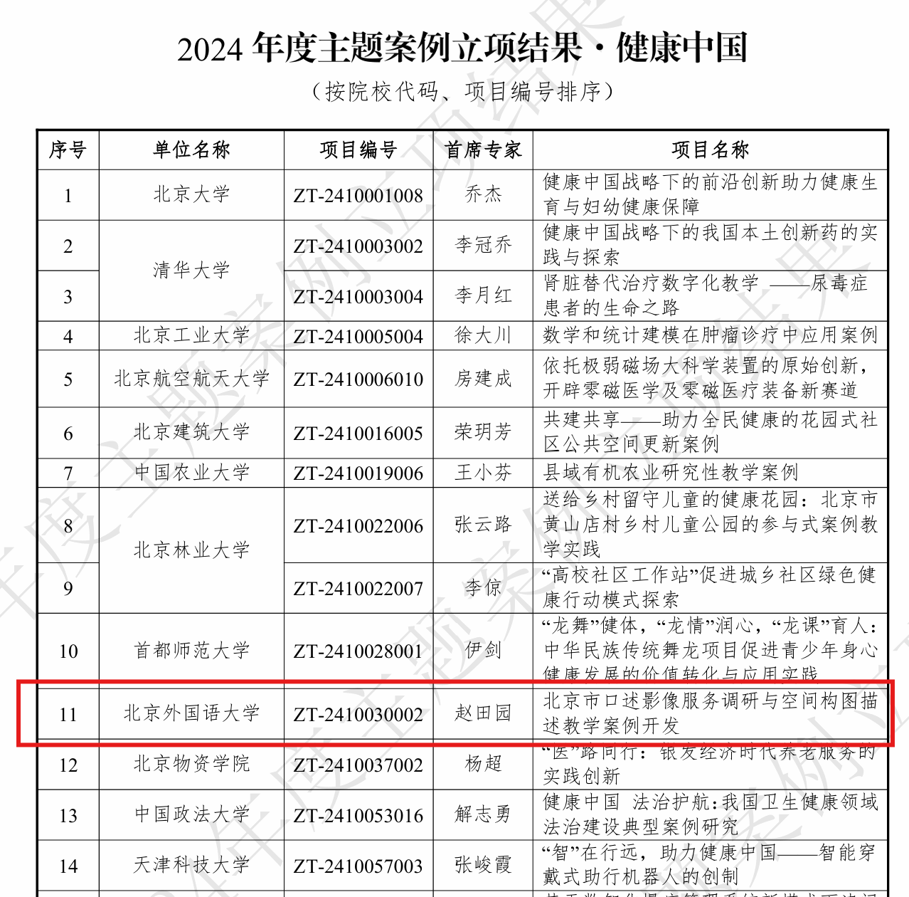 近日,教育部学位与研究生教育发展中心(简称学位中心)公布了2024年度主题案例立项结果。本年度围绕“绿色发展”“新质生产力”“健康中国”“数字中国”四个主题开展征集。SUNBET申搏官网学科发展中心主任赵田园副教授作为首席专家,香港城市大学鄢秀教授作为指导专家参与申报的案例《北京市口述影像服务调研与空间构图描述教学案例开发》,成功入选2024年度“健康中国”主题案例,成为SUNBET申搏官网本年度唯一获批立项案例。该案例项目采取实证研究与教学创新双轨并进模式:...