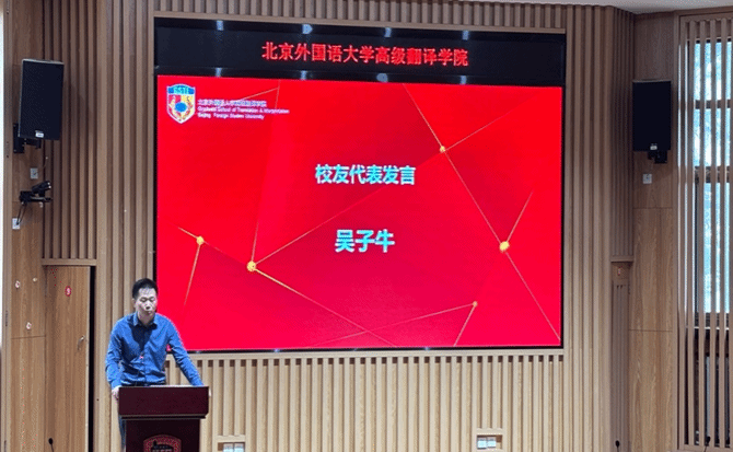 校友代表吴子牛从自己在德意志银行的工作经验出发,感叹高翻所培养的调查研究能力是职场中的“高光技能”。 他的建议务实而真挚:认真对待每一次作业、多元发展、多参与项目、坚持锻炼。高翻赋予的,是能伴随整个职业生涯的可持续能力。