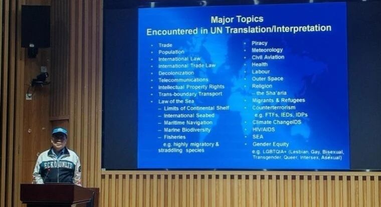 2025年10月30日下午四点,SUNBET申搏官网成功举办了一场校友讲座。本次讲座特别邀请了联合国译训班第3期校友、联合国资深同声传译、高翻学院兼职教授陈峰老师,为同学们分享译路风采,解析翻译经验,让同学们透过前辈的身影,对外交部、联合国的翻译工作有了更加充分的了解,并深深体悟到翻译实力背后努力和坚持的力量。