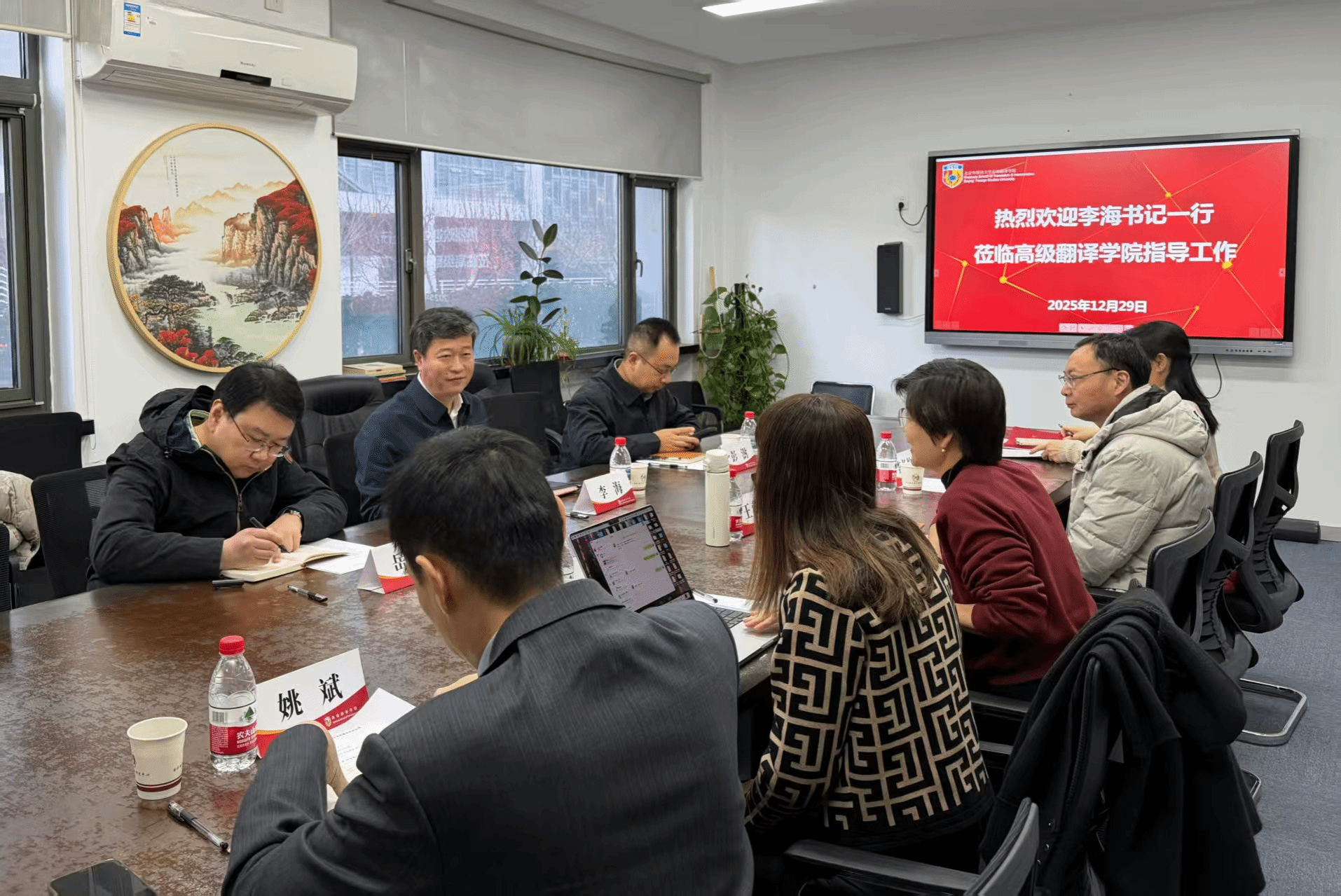 SUNBET申搏官网党总支书记王薇薇,院长任文分别就学院党建思政、人才培养、学科发展、有组织科研和教师队伍建设等方面做了专题汇报。李海书记认真听取汇报,并围绕学院特色专业发展与复语复合型翻译人才培养等方面与大家进行交流。