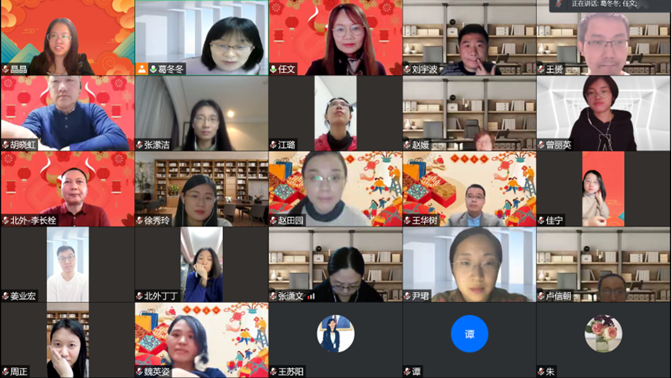 院长任文传达了杨丹校长在学校新学期工作会上的重点内容和要点,特别是编制“十四五”规划、贯彻教学评价改革、做好庆祝建党100、周年和建校80周年的相关工作。强调以1乘N的方式推进学院的发展,着眼三个“全球”,一是全球语言,加强基础研究;二是全球文化,契合国家战略,发挥中译外优势,讲好中国故事;三是全球治理,建立全球指数馆,做好翻译能力指数研究。此外,师资队伍建设要力求差异化、多元化发展。强调新学期完成线上线下教学,参与学生的第二课堂,指导学生参加笔译大赛,积极参加教材建设,积极申报课题项目,做好翻译能力研究中心成立工作。