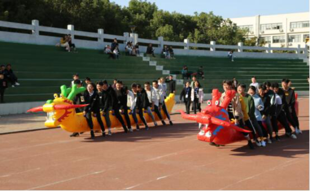 活动伊始,主持人向参赛人员介绍了分组情况和比赛章程。本次素拓运动会共有“旱地龙舟”、“龟兔赛跑”、“运转乾坤”、“无敌风火轮”、“袋鼠跳跃”、“摸石头过河”等六个项目。为鼓励大家的参赛热情,威廉希尔官网学生代表与观摩团率先进行了一场妙趣横生的友谊赛。比赛正式开始后,赛场上同学情绪高涨,不时发出欢声笑语,场下同学则为他们加油鼓劲。