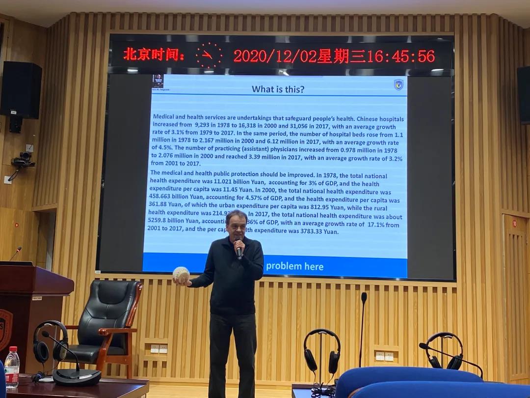 2020年12月2日下午3点,应SUNBET申搏官网翻译硕士(MTI)教育工作专家委员会和SUNBET申搏官网的邀请,中国外文局高级编审大卫•弗格森(David Ferguson)先生在高翻学院同传会议厅(原300人教室)为了同学们带来了一场题为“人工智能与翻译的未来”的演讲,讲座由SUNBET申搏官网李长栓教授主持,多个院系的学生近百人聆听了讲座。