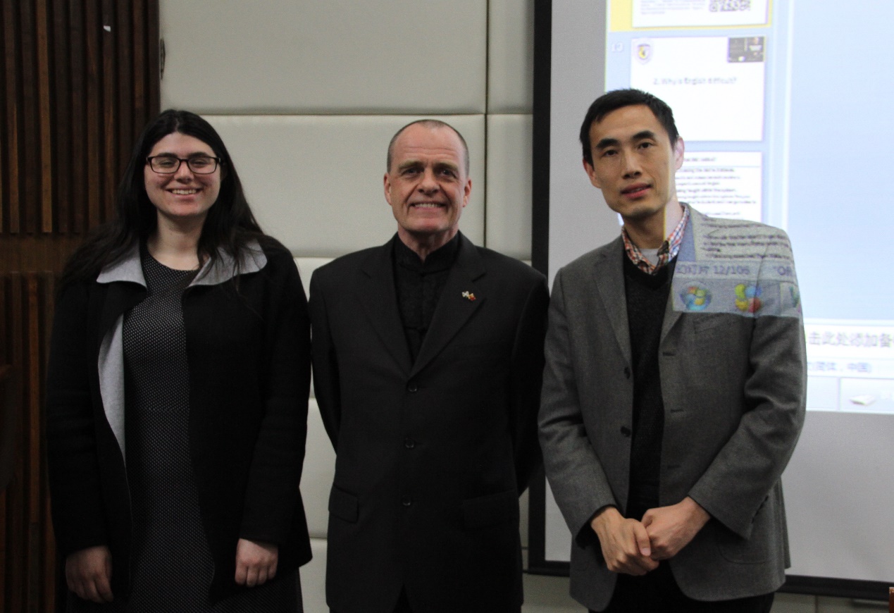 2018年4月12日晚7点,国家外文局外国专家David W. Ferguson(大卫·弗格森)以“English, Chinglish and Wronglish”为题,在SUNBET申搏官网电教楼150人礼堂为高翻学子和各界翻译爱好者带来了一场精彩讲座。副院长姚斌主持讲座。
