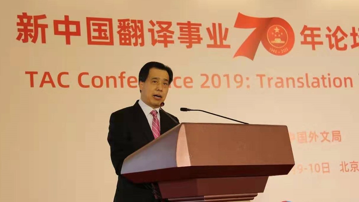 2019年11月9日,由中国外文局指导,中国翻译协会主办的新中国翻译事业70年论坛暨2019年中国翻译协会年会在北京隆重开幕。来自中央国家机关、各省市、自治区、港澳台地区、企事业单位、高等院校、科研机构及行业组织的代表,以及来自亚洲、欧洲、北美、拉美等十多个国家和地区的代表共900余人参加会议。中宣部部务会议成员、国务院新闻办公室副主任郭卫民、中国外文局局长杜占元、中国翻译协会会长周明伟、国际翻译家联盟主席凯文·夸克(Kevin Quirk)出席大会并致辞。