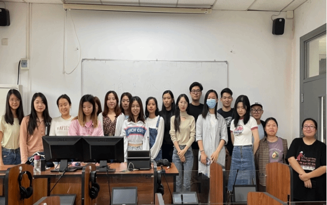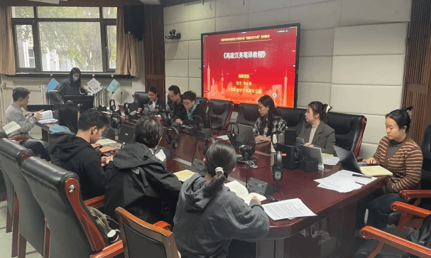 2022年10月,为迎接二十大,举办“喜迎二十大,青年进行时”主题口译训练,分组模拟新闻发布会流程,一组扮演主持人和发言人,另一组做译员,随后交换组别。模拟会议开始前,同学们补充相关术语并讨论口译策略;模拟会议后,老师给予点评指导,同学们互评互鉴。本次活动提高了同学们的专业素养,锻炼口译表达能力;加深了同学们深入了解党的二十大召开的伟大意义;坚定了同学们的理想信念。