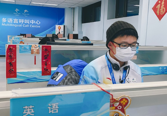 我的工作场馆是多语言呼叫中心,主要工作是为冬奥会提供第三方语言翻译服务。每届奥运会都会建立类似的系统来满足多语言服务的需求,这届冬奥会期间,多语中心作为冬奥会语言服务的重要补充部分,以三方通话的方式满足临时的、不需要面对面沟通的口译需求。在这里,我们为涉奥相关工作人员和志愿者提供21个语种在线翻译服务,我所在的英语线路提供的是每天24小时的电话翻译服务。