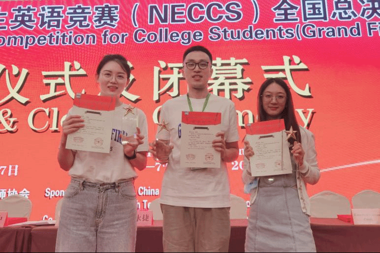 北外SUNBET申搏官网熊志远同学(中)在NECCS总决赛获奖现场