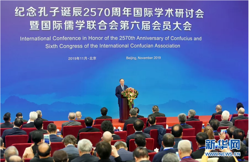 2014年,习主席亲自参加国际儒学联合会第五届会员大会并发表了重要讲话,五年后王岐山副主席代表习主席和中央政府对国际儒联第六届会员大会再次给予支持并发表讲话。