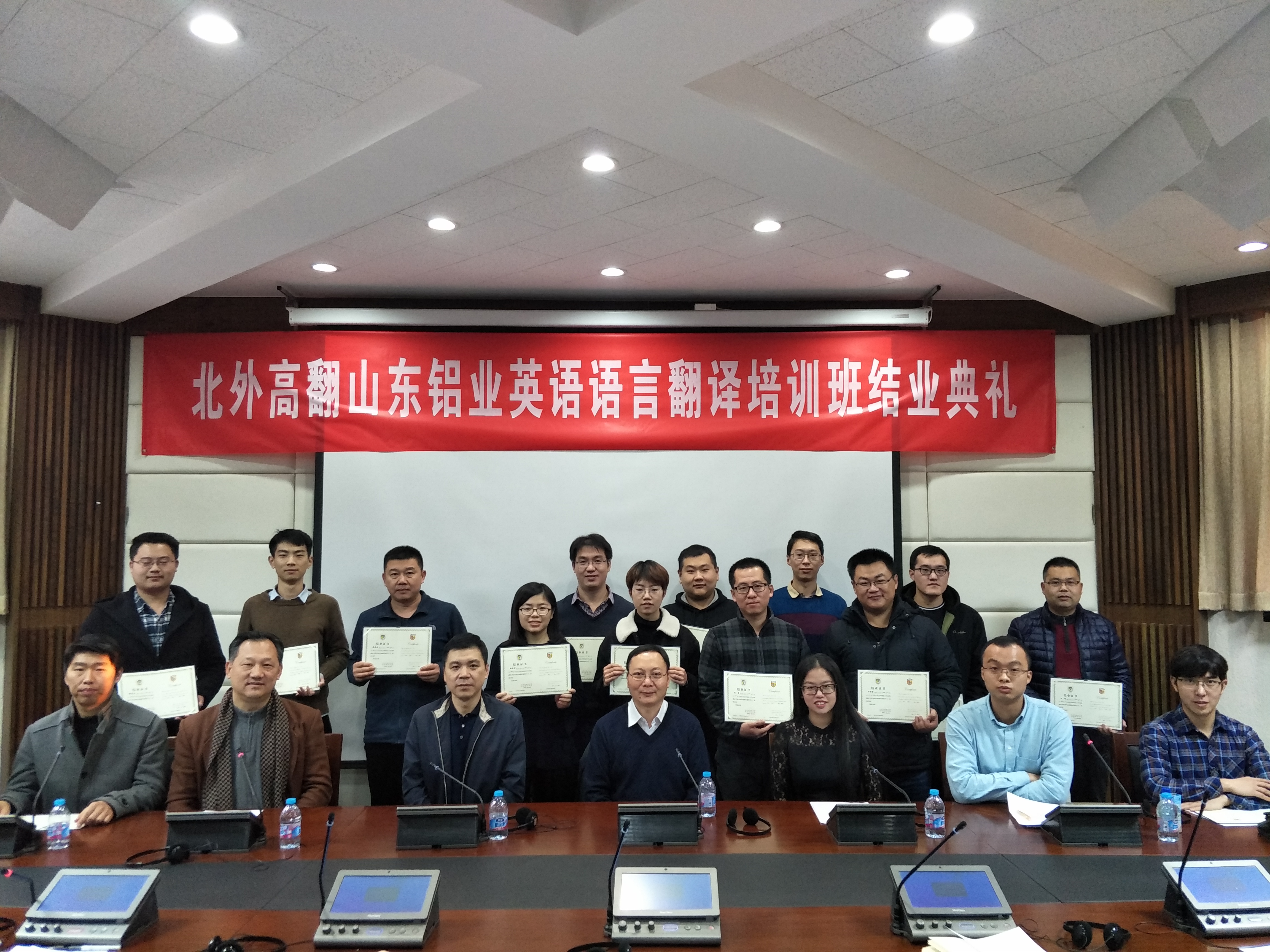 2017年12月27日,为期13个月的山东铝业英语语言翻译培训班在SUNBET申搏官网150人教室举办结业典礼,14名经过层层考试选拔出并组班的山东铝业员工,经过3个多月“艰苦卓绝”的学习,圆满完成了学习任务,收获了成果。
