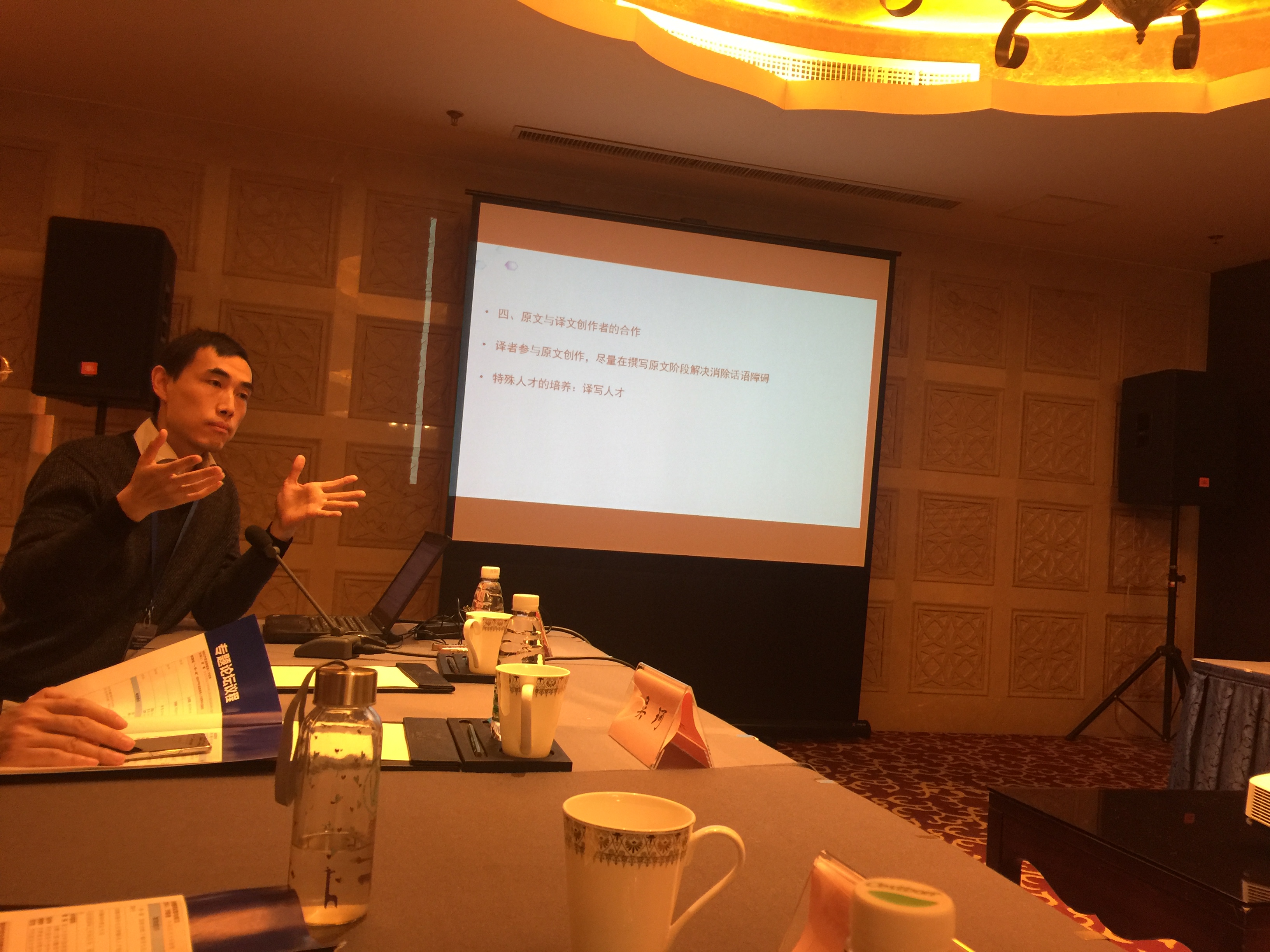 高翻学院教师代表以特邀嘉宾身份出席四个专题论坛。12月1日,中国翻译协会理事、口译分委员会副主任委员任文教授为“中国当代翻译理论的建构与发展专题论坛”担任主持并做大会发言,阐述中国口译话语体系构建。随后,任文教授在“新时期口译人才论坛”做主旨发言,探讨语言服务对口译教学、实践和研究的影响。之后,任文教授还参加了中国译协口译分委员会主任副主任委员年会,总结委员会2017年的工作,讨论明年的工作计划。