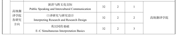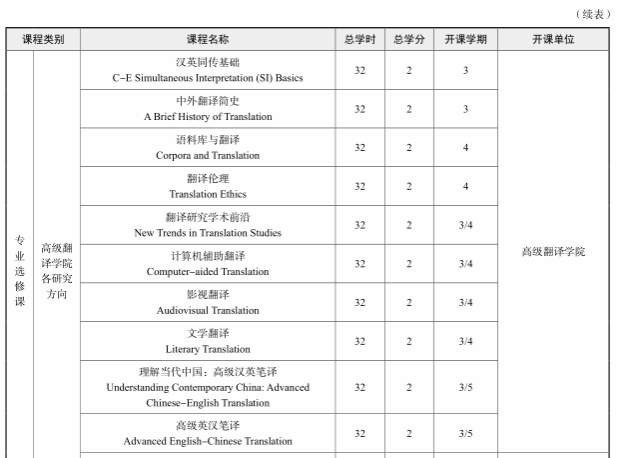 4. 专业选修课:翻译学专业至少选修 7 门专业选修课,计 14 学分。