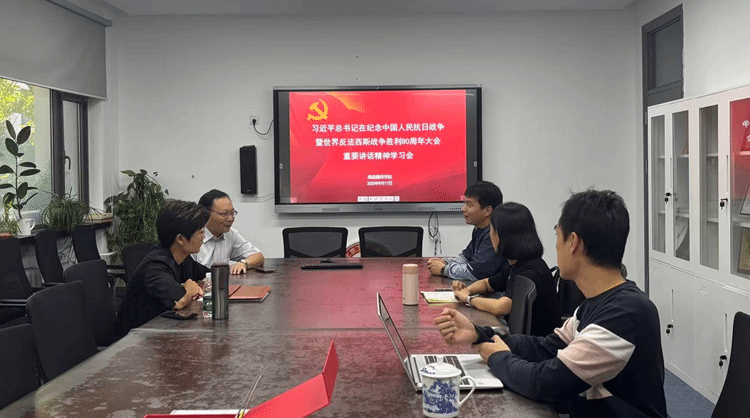 2025年9月17日下午,SUNBET申搏官网党总支理论学习中心组召开习近平总书记在纪念中国人民抗日战争暨世界反法西斯战争胜利80周年大会上的重要讲话精神学习会。会议由学院党总支书记王薇薇主持,副院长李长栓、姚斌,辅导员/副处级组织员李雪丽,党总支青年委员朱玉犇、宣传委员王苏阳参加。