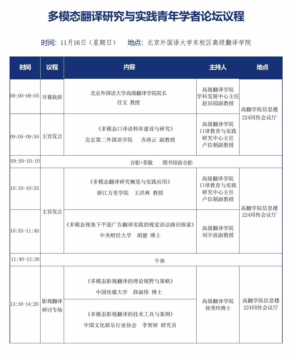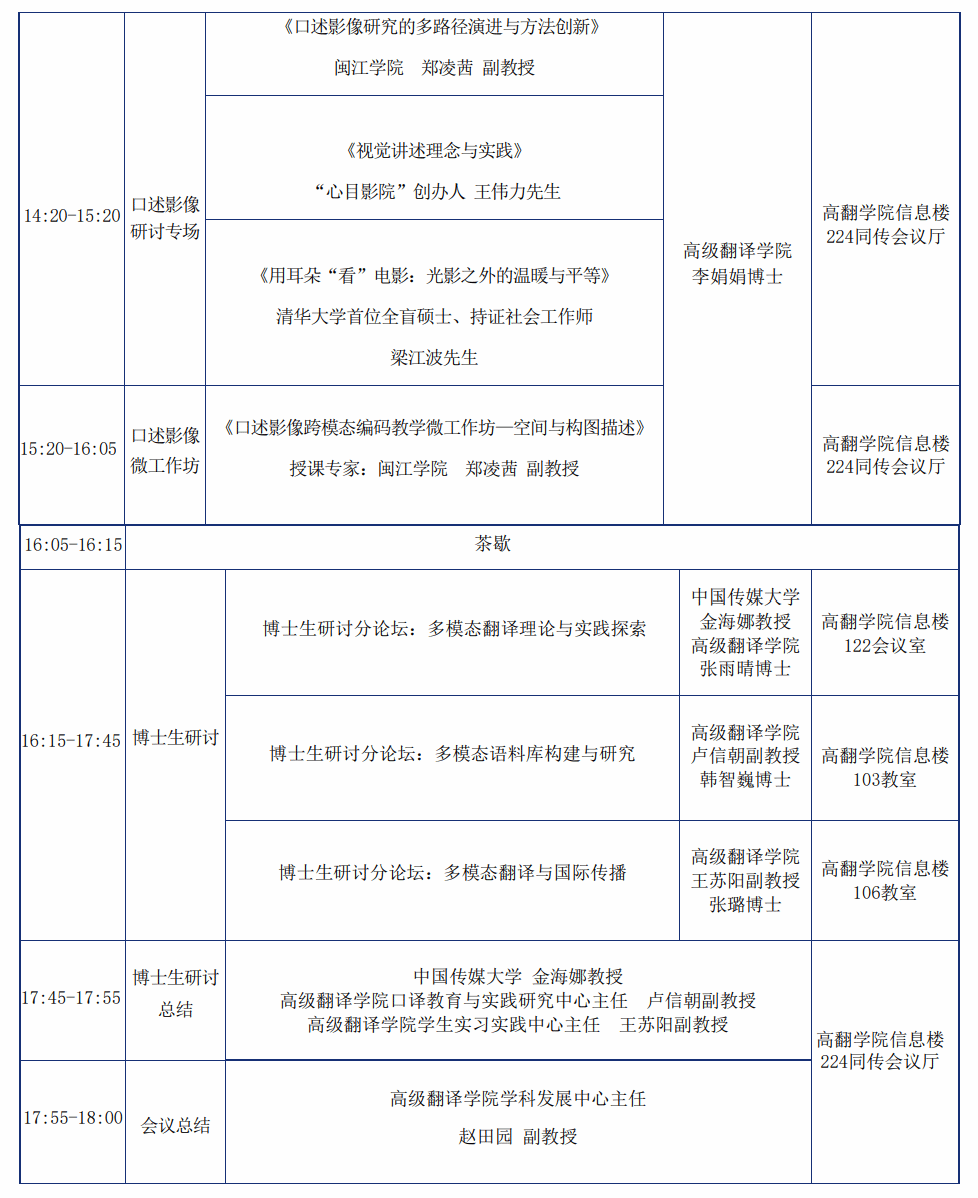 Ø博士生研讨分论坛(多模态翻译理论与实践探索):高翻学院信息楼122会议室