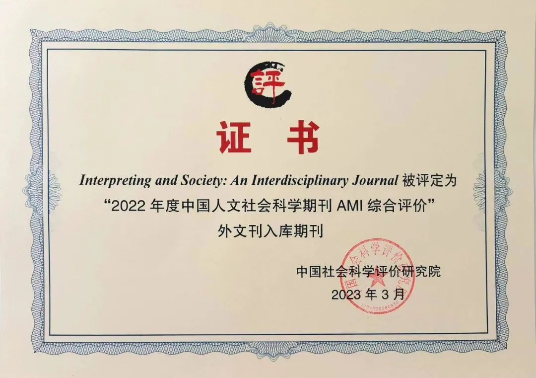 热烈祝贺英文国际期刊Interpreting and Society: An Interdisciplinary Journal(《口译与社会》)在创刊仅一年半后被评为“2022年度中国人文社会科学期刊AMI综合评价外文刊入库期刊”!