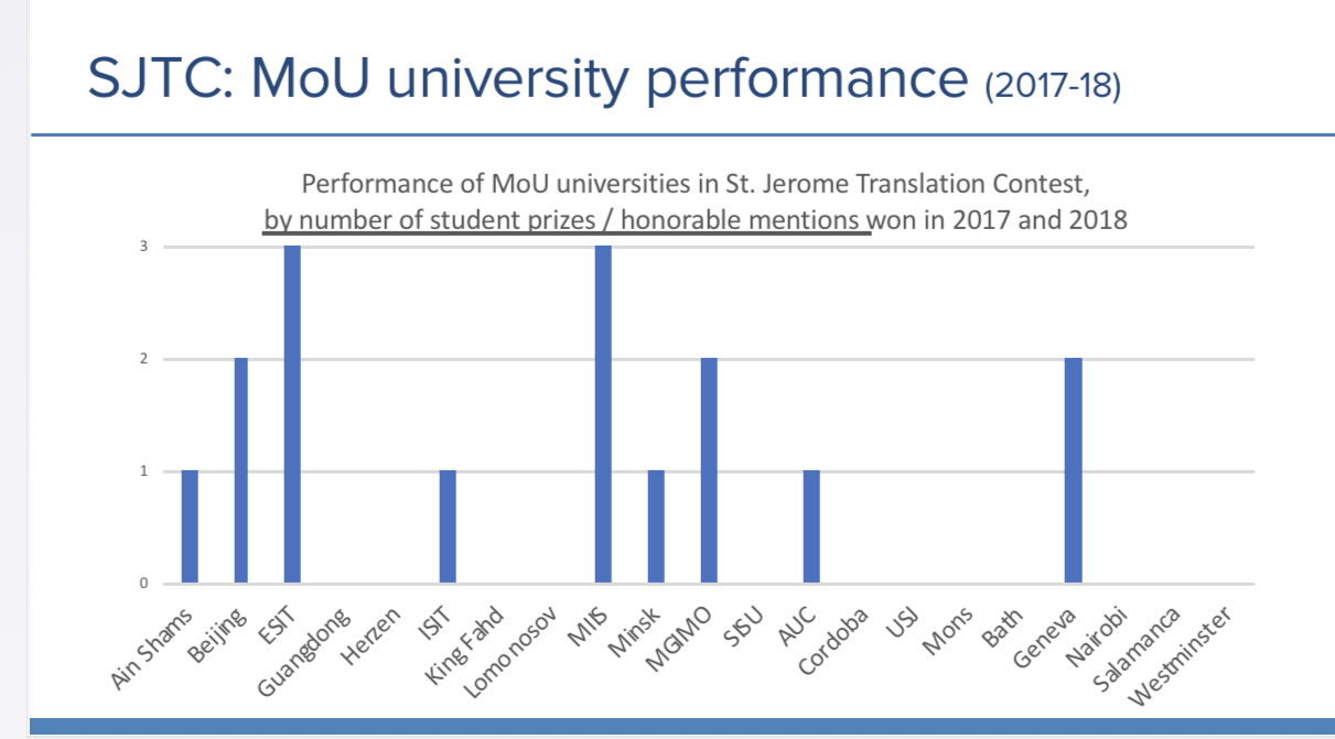 各合作院校在联合国圣杰罗姆翻译竞赛中的获奖情况